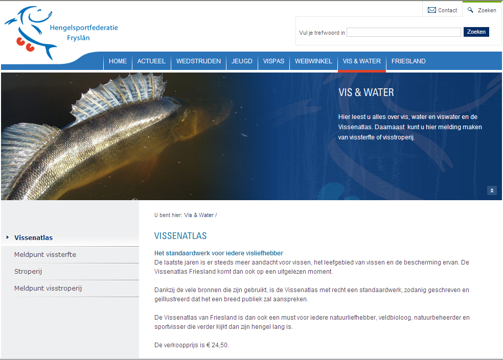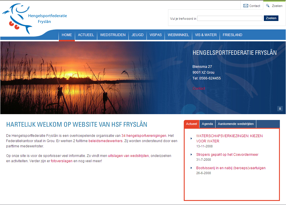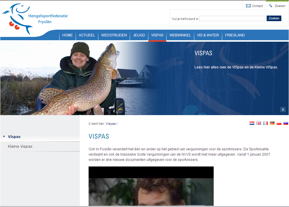 Enkele beelden van de website van Hengelsportfederatie Frieslân
