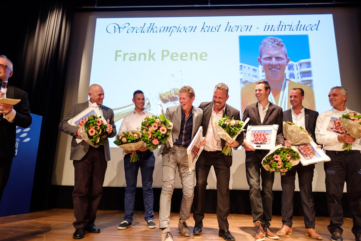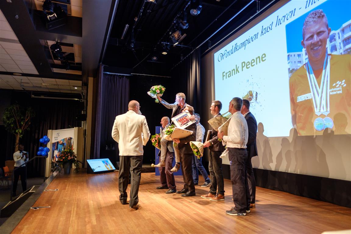 Het Topsportgala stond in het teken van vele prijsuitreikingen. Nederland organiseert elk jaar immers de nodige nationale kampioenschappen – in allerlei leeftijdscategorieën, voor zowel mannen, vrouwen en junioren. En dan zijn er nog de deelnames aan EK’s en WK’s. Zo greep Frank Peene uit Westkapelle onlangs de gouden medaille bij het WK Kustvissen in Zuid-Afrika.