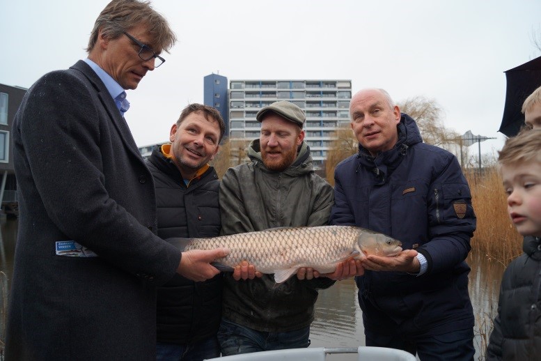 Vrijdagmiddagmiddag 4 maart hebben wethouder Frits Beckerman, heemraad Dirk Siert Schoonman, Sander Kantelberg (voorzitter HSV De Rietvoorn) en Jan van de Bovenkamp (vice voorzitter Sportvisserij Midwest Nederland) graskarpers uitgezet in Veenendaal. Dit gebeurde onder grote belangstelling, er waren ongeveer 50 personen op dit uitzetevenement afgekomen.