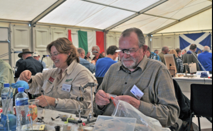 Ook buiten is er veel te zien en te doen. Zeer kundige ‘casters’ geven demonstraties over de diverse werptechnieken, je kunt onder deskundige begeleiding vanuit een kano of bellyboat leren vissen, tal van standhouders verkopen prachtige materialen, er is een tweedehands beurs en ook de traditionele Fly Fair-veiling wordt gehouden.