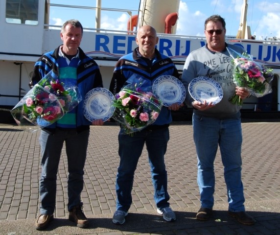 Met een tweede plaats op de “Maartje” kwam Piet Buijk, na zijn eerste plaats van twee weken geleden, op maar drie klassementspunten uit, evenveel als Frank van Schilt op de “Estrella bakboordzijde”, maar met meer stuks vis en gewicht aan vis. Op de “Estrella stuurboordzijde wist Peter Leentjes het derde blauwe bord op te eisen. Deze drie heren stonden terecht op het podium.