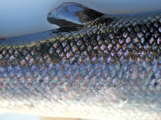 De schubben op de zijlijn zijn van de andere schubben te onderscheiden, doordat het lijkt alsof er een klein, horizontaal streepje op staat. Om het aantal schubben op de zijlijn te bepalen, moeten alle schubben van de kop tot aan de staartvin worden geteld. Soms wordt ook het aantal schubben boven de zijlijn als kenmerk gebruikt.