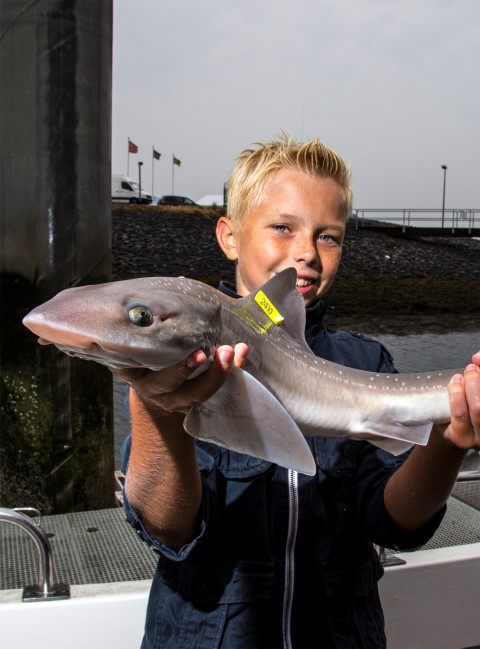 gevlekte gladde haaien de laatste jaren steeds meer voor langs de Nederlandse kust. Sportvissers vangen deze haaien ook steeds vaker aan de hengel. Dit was voor Sportvisserij Nederland aanleiding om een project te starten waarin sportvissers de haaien die zij vangen voorzien van een tag (merkje). Aan de hand daarvan kan onderzoek worden gedaan naar de verspreiding (leefgebieden) en zwemroutes van gevlekte gladde haaien.