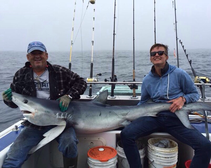 In het buitenland zwemmen haaien die een slag groter zijn dan de haaien langs onze kust bewijst Boudewijn van Nimwegen met deze grote blauwe haai.