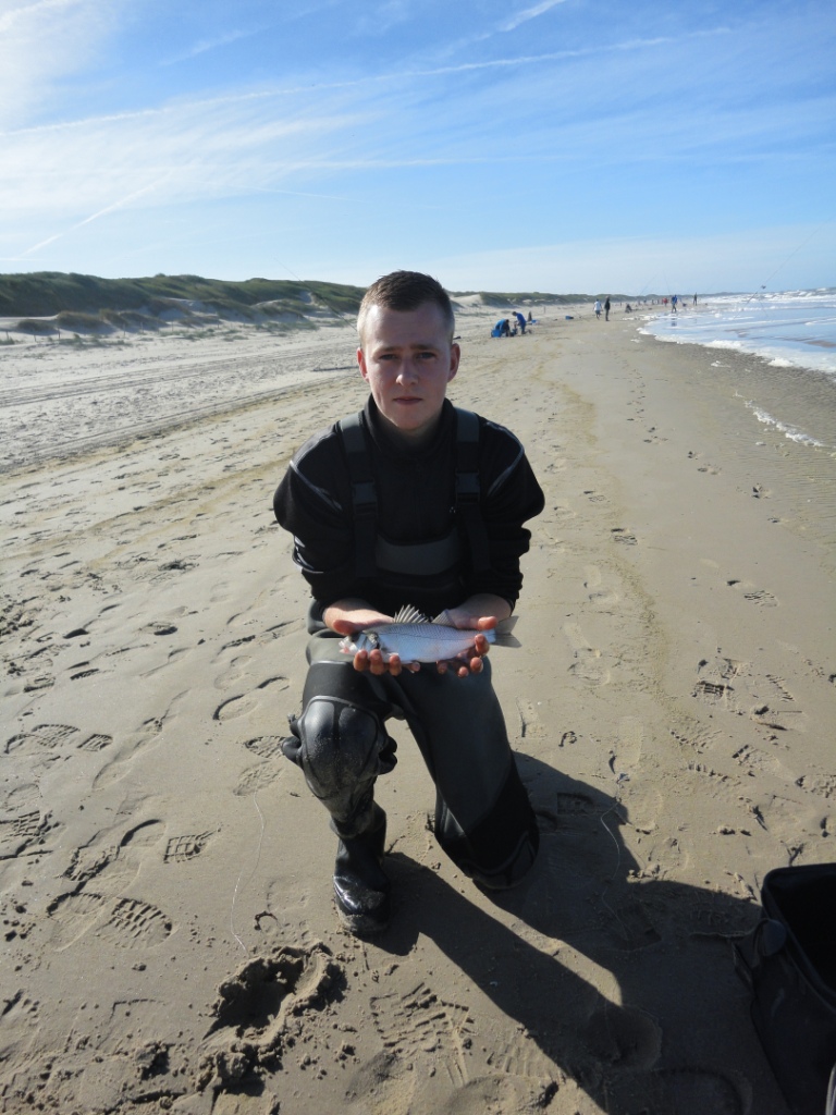 De eerste twee uur werden op korte afstand door de meeste deelnemers grote botten en mooie scholenbaarzen gevangen. Soms liep er zelfs een grote baars tussendoor, maar in de onstuimige golven bleek het lastig om zo’n vis te landen. Maar gestaag liepen de meeste deelnemers naar 3-4 maatse botten, lees: botten rond de 30 centimeter. Toch was de plaats van loting wel bepalend voor de mogelijkheden. Met name in het tweede gedeelte van de wedstrijd, toen het water laag werd, was het essentieel om dieper water binnen werpbereik te hebben. Daar liepen de vangsten zelfs op tot meer dan 10 vissen per visser.