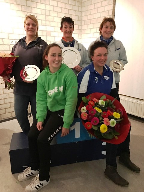 Na deze enerverende strijd wist niemand meer de exacte uitslag wat de prijsuitreiking heel spannend maakte. Voor de bekendmaking van de uitslag van de Topcompetitie werd eerst de WK ploeg Dames Kust 2016 gehuldigd, die een mooie 3e plaats behaalde tijdens het afgelopen WK in Ierland. Hierna kwam de uitslag met op de eerste plaats Linda van de Velde met 9 punten, Susan Stuijts tweede met 12 punten en op de derde plaats Clarinda van de Zande-Rijnberg met 15 klassementspunten.