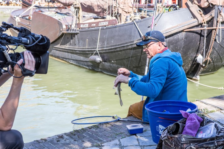 Voordat de dobbers te water gaan, gaat het tweetal eerst langs de lokale hengelsportzaak. Voorzien van vers aas en de laatste vangstinformatie, wandelen ze daarna naar een lange steiger in de Maashaven op ‘Zuid’. Ed begint met de bolognesehengel en een eenvoudig witvistuigje. Deze ultralange hengel blijkt geen overbodige luxe, want de haven is hier al meteen zeven meter diep. Marco kiest daarom voor een andere aanpak: hij vist op half wate,r met een licht werphengeltje en een schuifdobber. Door te voeren met natgemaakt witbrood, ontstaat er een mooie voerwolk en hoopt hij de vis naar boven te lokken.