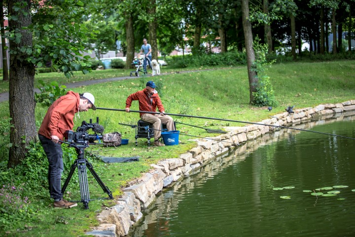 In het centrum van Voerendaal ligt in parkgebied ’t Broek een prachtige visvijver. Daar heeft de lokale hengelsportvereniging gezien de aalscholverpredatie in dit water flink wat gekweekte karper en kruiskarper uitgezet. Vanwege de hoge bezetting worden deze vissen niet te groot en zijn ze prima met licht materiaal te bevissen. Ed kiest voor de vaste stok met elastiek, Marco opteert voor de methodfeeder.