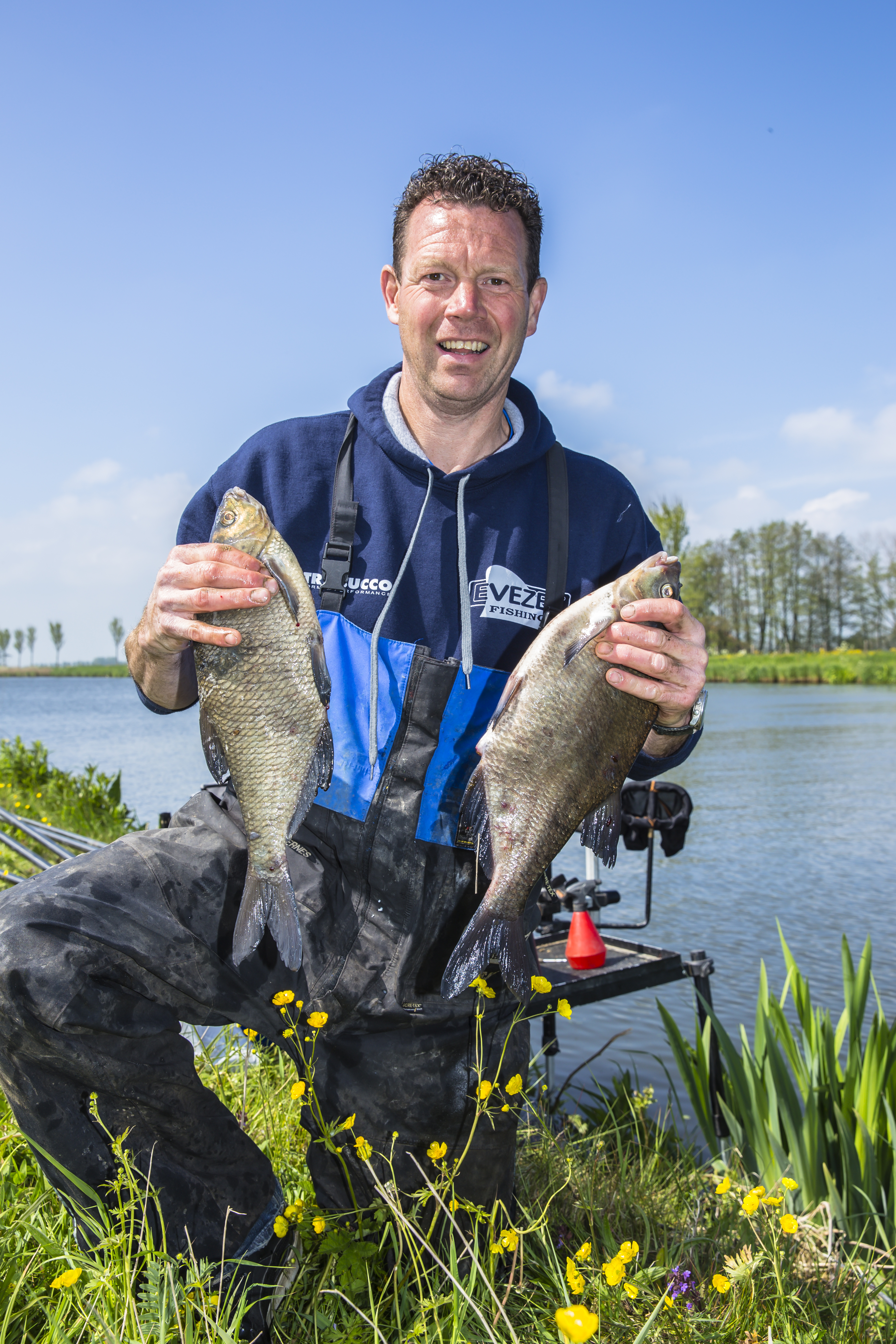 Junioren bondscoach Nico Bakkernes met twee mooie brasems