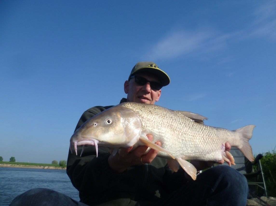 Djon Okkerse ving deze prachtige barbeel van 80 cm op een pellet.