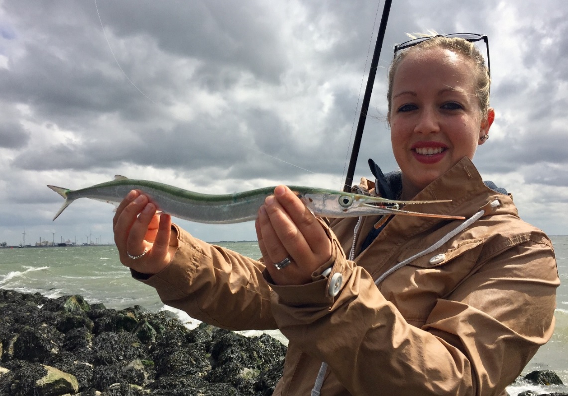 Er werden ook zeevissen geteld tijdens de week van ons water. Dat bewijst Sophie Neitzel met een schitterende geep.