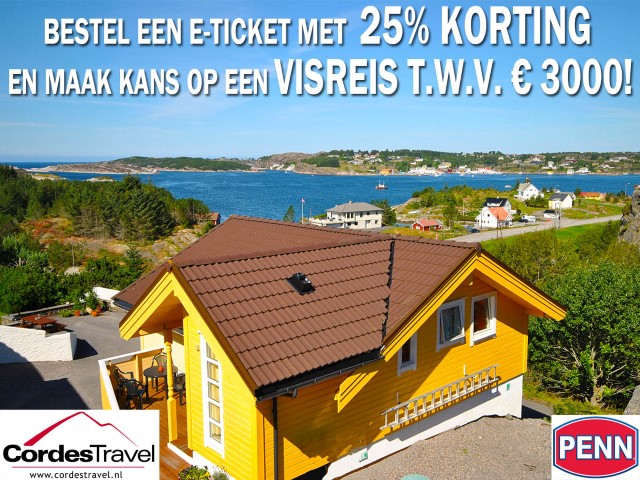 Cordes Travel en Penn bieden in samenwerking met de Hengelsport- en Botenbeurs een visreis naar Noorwegen aan t.w.v. 3.000 euro. Met gratis gebruik van huis en visboot op accommodatie Havferie bij Bergen. De winaars krijgen van Penn een prachtige hengel met molen mét gevlochten Spiderwire-lijn. Zeevissen tussen de fjorden en open zee, vissen op pollak, koolvis, kabeljauw, leng, lom en vele andere prachtige soorten vis.