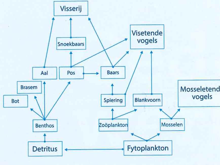 Schematische weergave van het voedselweb van het IJsselmeer en Markermeer.