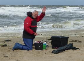 De hele wedstrijd door werden er botten en zeebaarzen gevangen en dat kon rekenen op grote belangstelling van wandelend publiek. Zeker langs de boulevard van Noordwijk was het een drukte van belang. Niet zelden moest uitleg worden gegeven over wedstrijdvissen aan zee en dat kon rekenen op positieve reacties. En dat is ook weleens anders!!