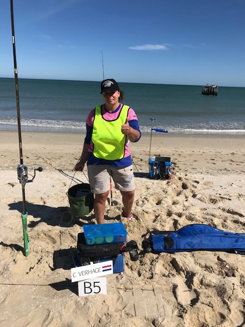 In het B vak stond Christel Verhage die een ijzersterke 2e plaats behaalde. Maar liefst 39 vissen wist zij te vangen met 32900 gewichtspunten. Onze nieuweling Sharona Mol-de Winter stond te stuiteren van de spanning in de C-sector. Ze kende een vliegende start met 10 vissen in het eerste uur. Toen kenterde het getijde en was het sprokkelen maar ze pakte toch nog een 7e plaats met 17 vissen en 11150 punten. Susan Stuijts viste zich naar een geweldige 2e plaats in het D vak. Ook Susan ging hard van start een middelmatige vangst tijdens het veranderen van het getijde maar ving het laatste half uur nog een paar mooie vissen. Met 19 vissen en 12140 punten pakte ze deze voor het team belangrijke 2e plaats. Clarinda van de Zande had een slechte start maar in het vak bij Clarinda waren de vangsten een stuk minder en was het zwoegen met de grote kelp wieren voor haar visstek. Haar doorvissen werd beloond op het einde met de grootste vis van deze dag een gitaar rog van precies 1 meter. Met 8 vissen en 7360 punten werd ze nog mooi 3e in haar vak.