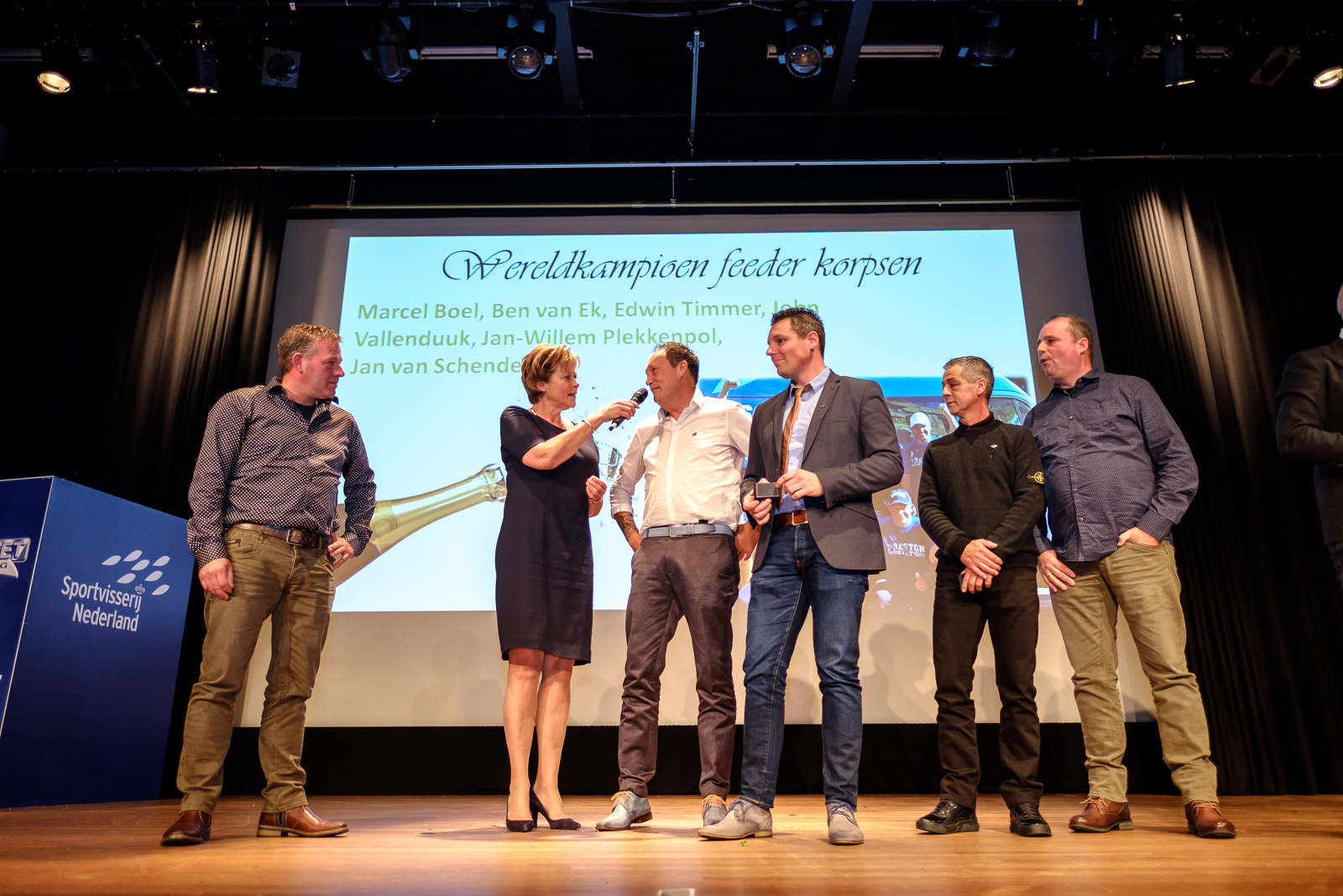 Samen met de tweede plek voor het Nederlandse team en het brons voor de Oranje vrouwen een prachtige prestatie die bijzondere aandacht kreeg op het gala. Dat gold ook voor het goud dat Nederland pakte op het eerste WK Feedervissen voor Korpsen.