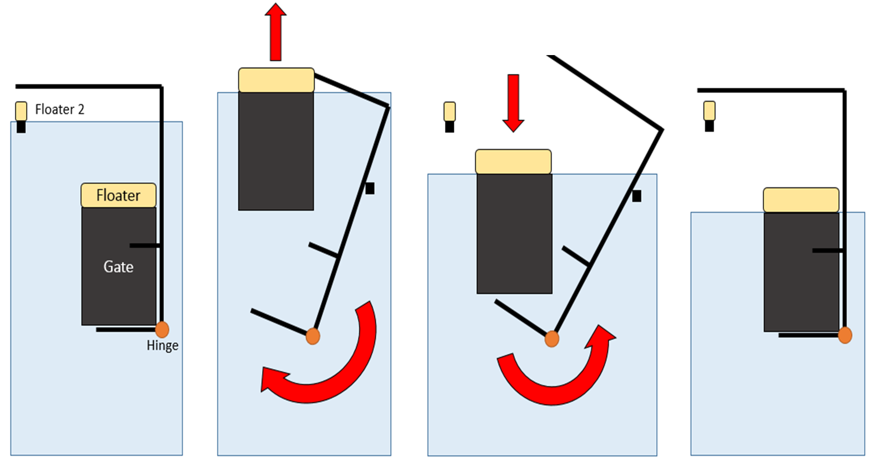 op het sluisprincipe, waarbij water en vis