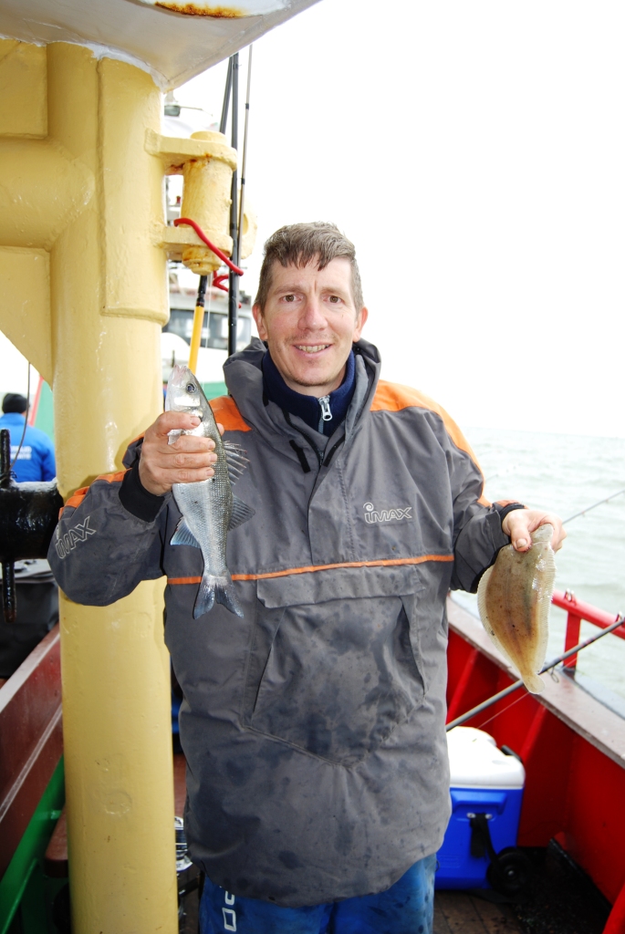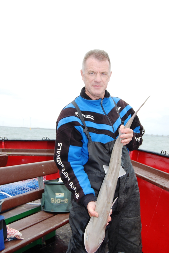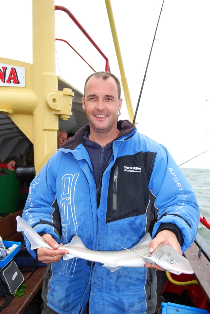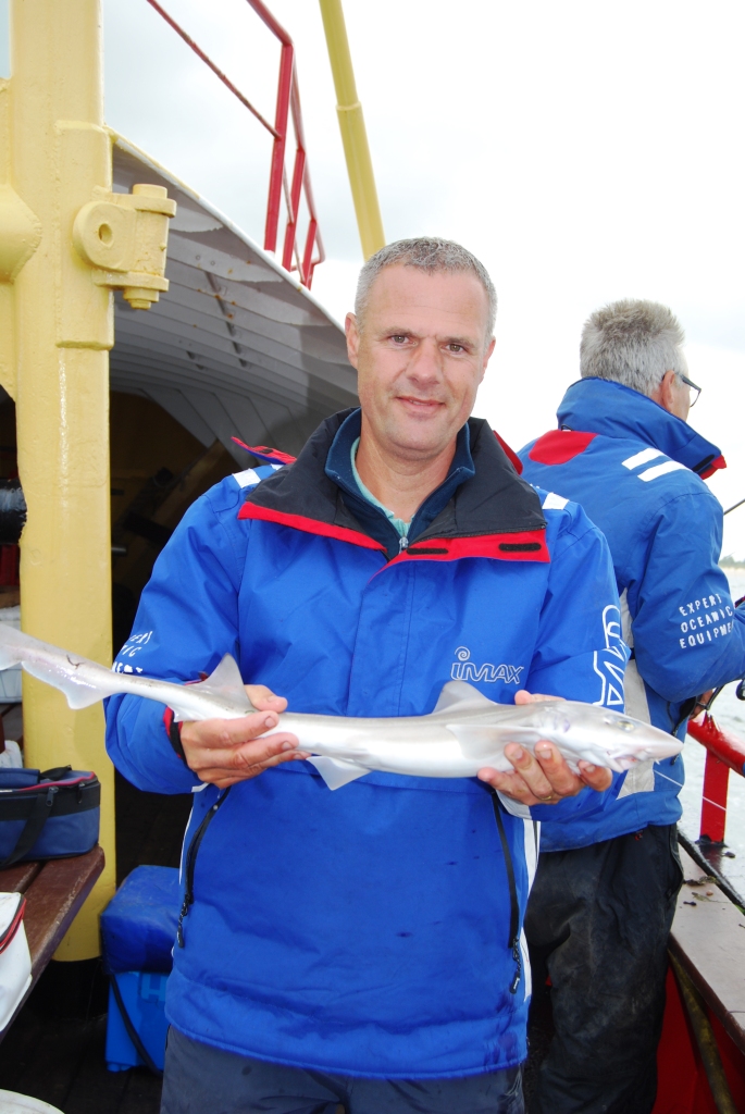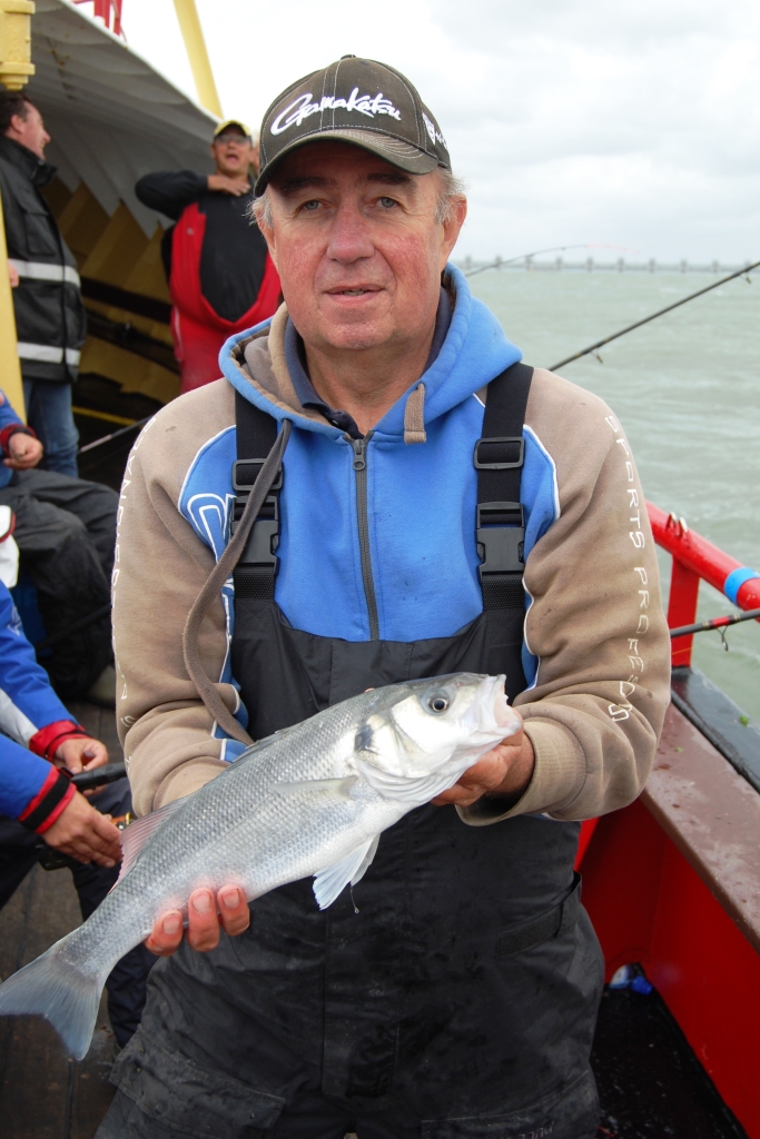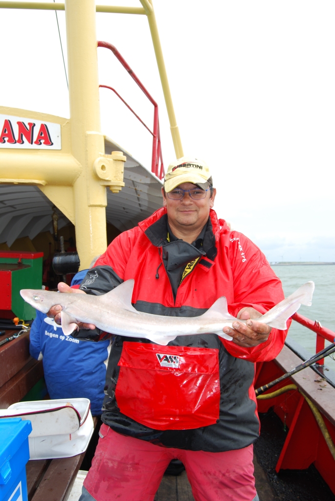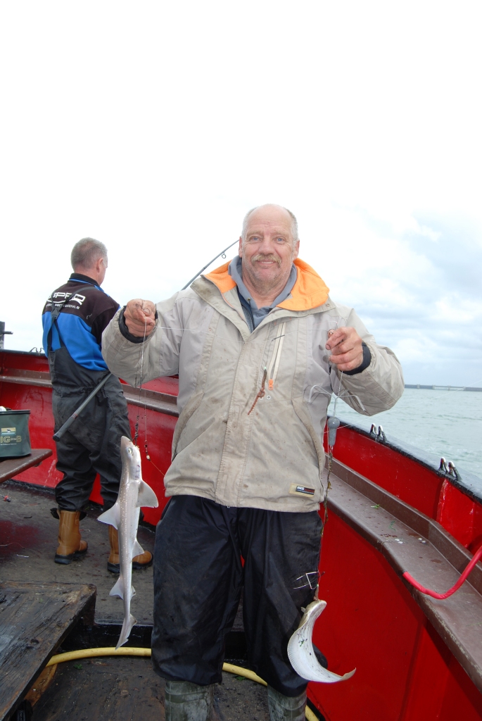 Al snel na het fluitsignaal kwamen de haaien binnen boord. Piet Buijk ving een pracht exemplaar, Ernest Ripson volgde, maar Remco Geuze kwam het best naar voren met nog twee haaitjes en weer een zeebaarsje. Ook Peter Leentjes en Rien van Eekeren vingen er weer één, maar vielen daarna stil. Aan bakboordkant was het echt harken voor een visje en Sjaak Verburg lachte van oor tot oor toen hij een haaitje en een tong tegelijk ving. Frank van Schilt had intussen ook nog maar één mooie bot, maar zorgde met een haai voor zijn zekere plaatsing voor de top- competitie. Remco kon intussen aan stuurboordkant al gaan genieten van een naderend Nederlands Kampioenschap, want concurrent Henri Karremans kon slechts één tongetje bijvangen. Eric van Schilt ving er nog wel twee! Aan deze kant van de boot ontliepen de deelnemers uiteindelijk elkaar niet veel in punten en de (helaas kleine) aantallen en bijzondere vissen brachten beslissing. De bakboordkant moest helaas ook vier deelnemers met geen vis toestaan, waaronder WK internationals als Arjan Stelwage en Albert Leeuwis. Jammer!