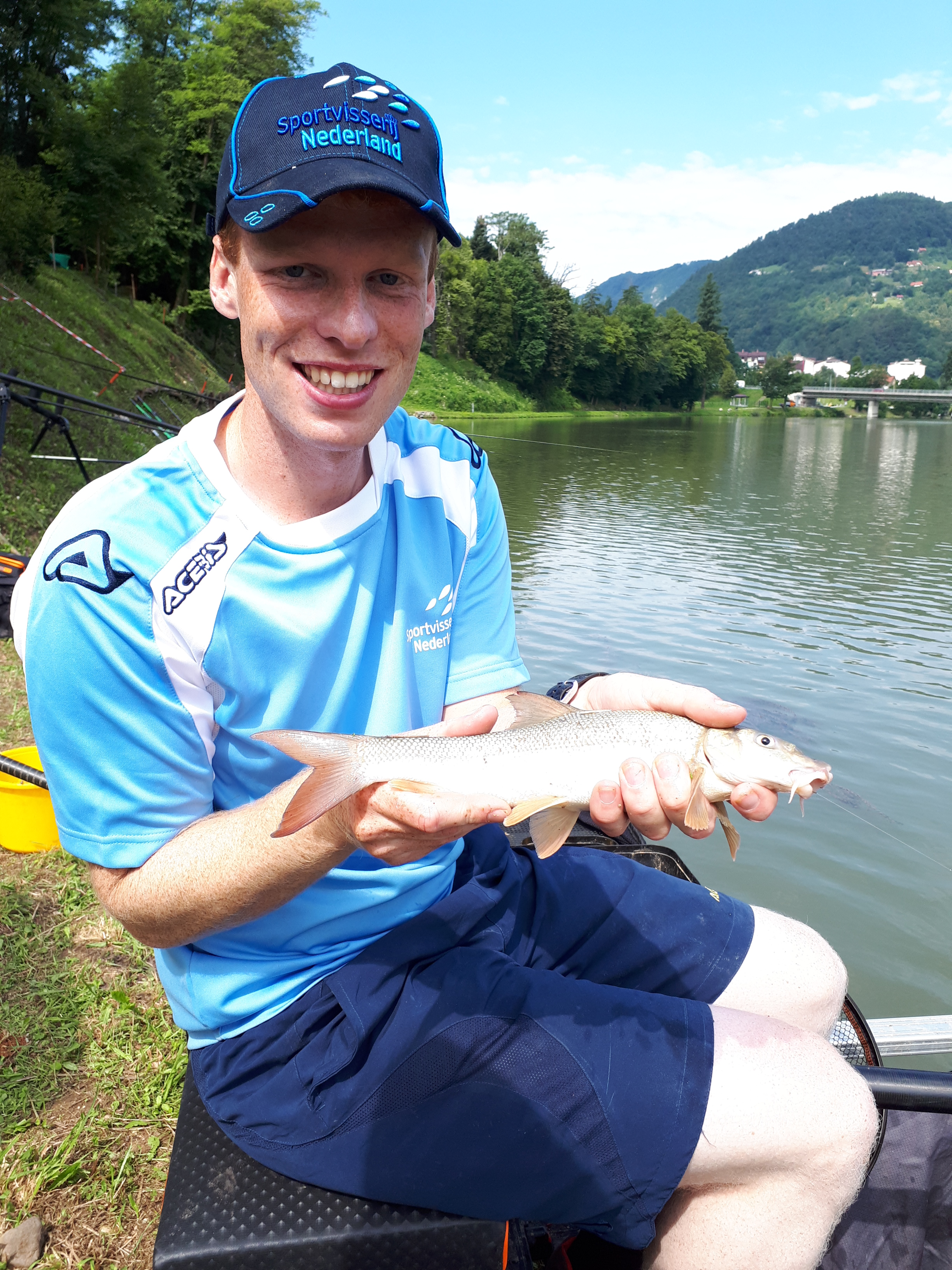"Het EK wordt aan de Sava gevist. Door de regenval de afgelopen week is het water in de rivier veranderd in vies bruin water. Desondanks lukte het gisteren (dinsdag red.) toch om tussen de 6 en 13 kilo te vangen aan vimba's, barbelen en een enkele carassio's. Vandaag (woensdag red.) is het warm en zitten we in een sector met diep water, tot wel 8 meter. Het water is minder troebel en we vangen vis! Een tiental barbelen waaronder een exemplaar van 2 kilo hebben de weg al naar het schepnet gevonden en we zijn pas anderhalf onderweg", vertelt Stefan Verhoeven halverwege de trainingsdag.