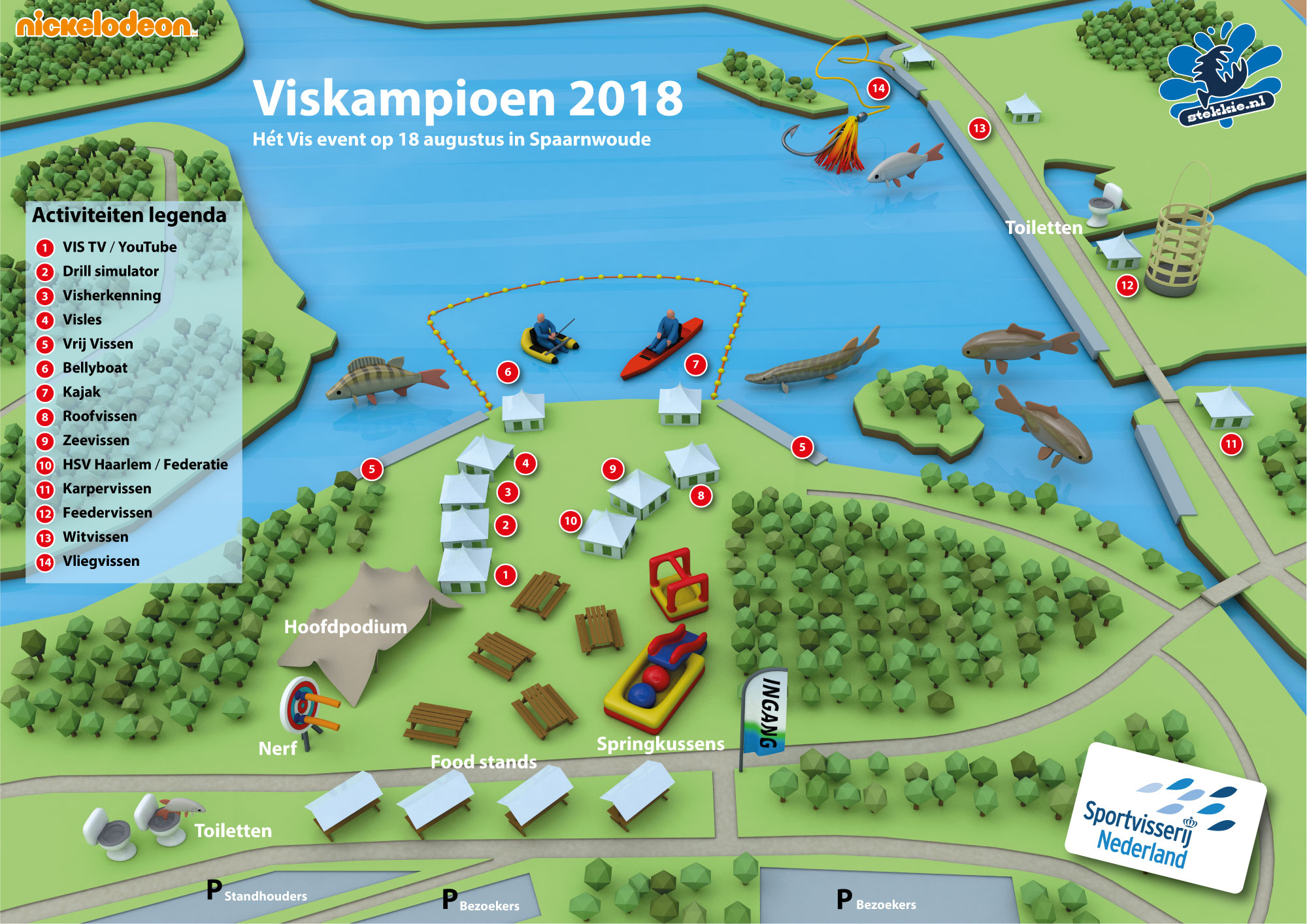 Viskampioen 2018, een initiatief van Sportvisserij Nederland, wordt met bijna 1.000 aanmeldingen het grootste jeugdsportvisevent dat ooit in Nederland is gehouden. Aan de grote plas van het terrein is van alles te doen, te zien en te beleven. Deelnemers kunnen bijvoorbeeld onder begeleiding in een kajak of bellyboat stappen en aan de hand van allerlei experts witvissen, karperen of een roofvis-, zeevis-, vliegvis- en streetfishing-clinic volgen.
