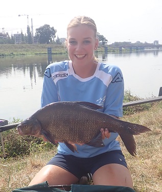 Kira Epping (15) met een knots van een brasem uit het Poolse Oder Canal.