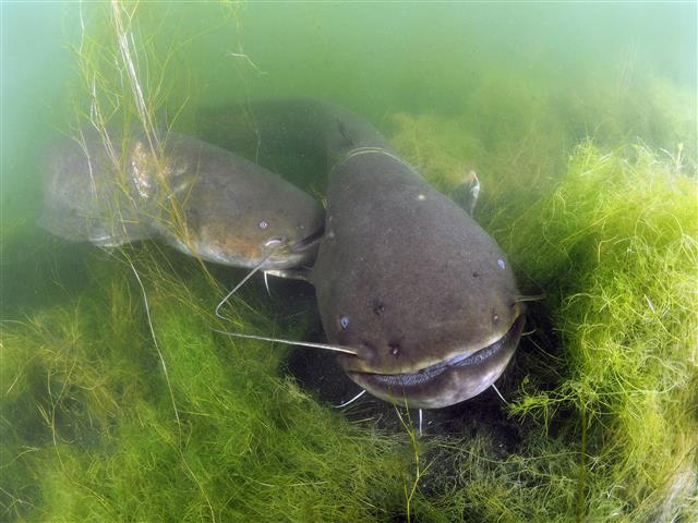 De eitjes van de meerval zijn rechts op de foto duidelijk waarneembaar.