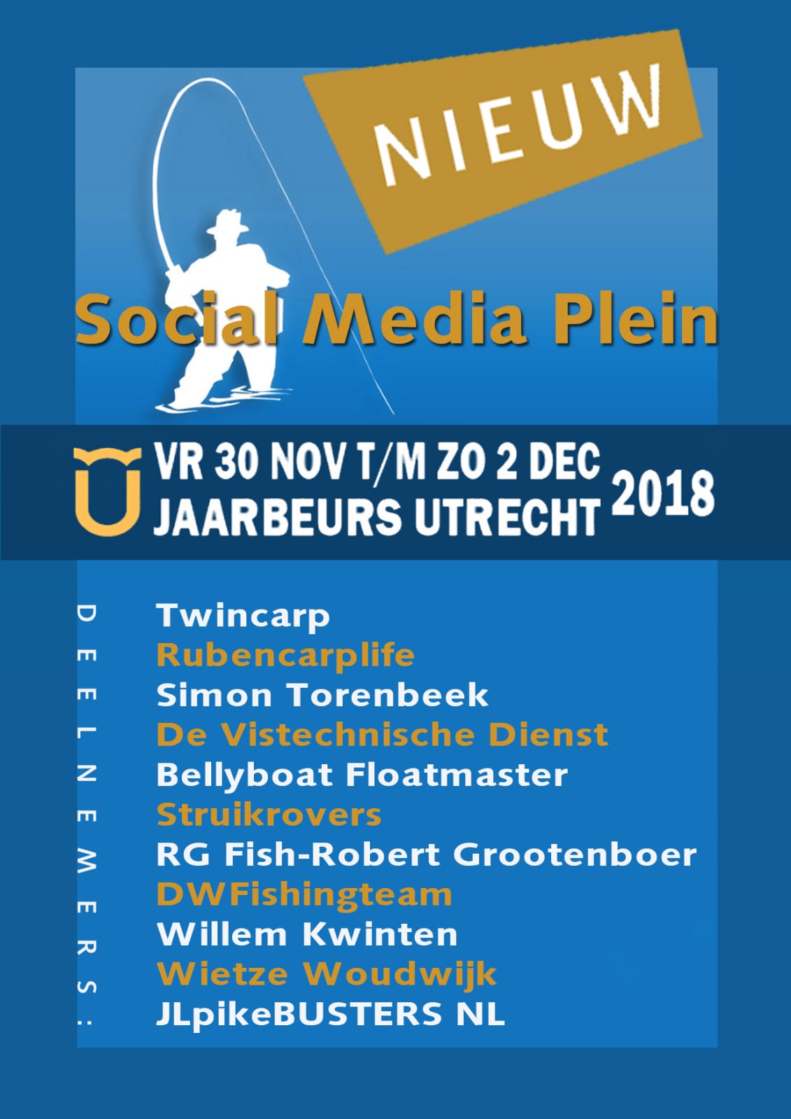 Helemaal nieuw dit jaar op de Hengelsport- en Botenbeurs in Utrecht is het Social Media Plein. Op deze stand zijn continu allerlei bekende vissende Youtubers, Facebookers en Instagrammers te vinden, waaraan je alles mag vragen, mee op de foto kunt of gefascineerd kunt luisteren naar hun verhalen. Lees