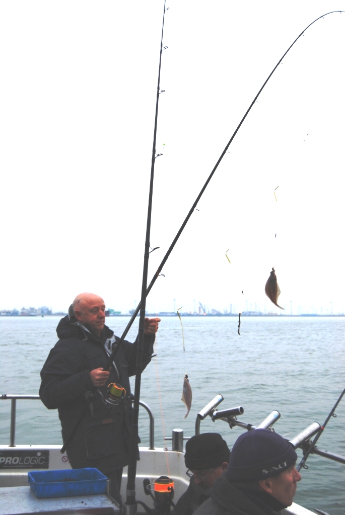 De “Pirate 2” met schipper René de Back aan het roer voer in donkere omstandigheden naar een beproefde stek tegen de “Spijkerplaat” aan en de deelnemers startten om 8.10 uur al met de eerste periode. Terwijl het zachtjesaan licht werd kwamen de eerste vissen al aan boord of vielen net buiten de reling van de haak. Omdat er nog niet zoveel getijdenstroming liep, beet de vis namelijk erg voorzichtig. Pim Troost werd aan bakboordzijde na twee uur vissen de winnaar met 16 vissen voor Mark van Wanrooij en Frank van Schilt. Aan stuurboordkant ving Peter Leentjes 18 vissen, genoeg voor de sectorwinst. Sjaak Verburg en Remco Geuze volgden. Omdat onder andere de algemeen leider van de eerste twee dagen, Rien van Eekeren, nogal wat puntjes had laten liggen, schoof het klassement verder in elkaar. De tweede periode verwachtte iedereen een harde opkomende getijdenstroming maar dat viel toch erg mee. Met een 200 grams ankerlood bleven de lijnen keurig liggen. Maar de zwakke stroming spoorde de vis opnieuw niet aan tot fanatieke aanbeten. De krabben wel! Die hingen soms met bosjes op de beaasde haken. Opnieuw vielen er vissen van de haken bij het binnen tillen. En Pim Troost liet zien, dat hij snode plannen had. Met 14 vissen won hij weer de bakboordkant, voor Mark van Wanrooij en Angelo Hensen. Aan de ander kant van de boot pakte Remco Geuze de winst voor Sjaak Verburg en Peter Leentjes. Rien van Eekeren en Frank van Schilt lieten ook nu weer kostbare punten liggen. Sjaak Verburg sloop dichterbij in het totaalklassement.