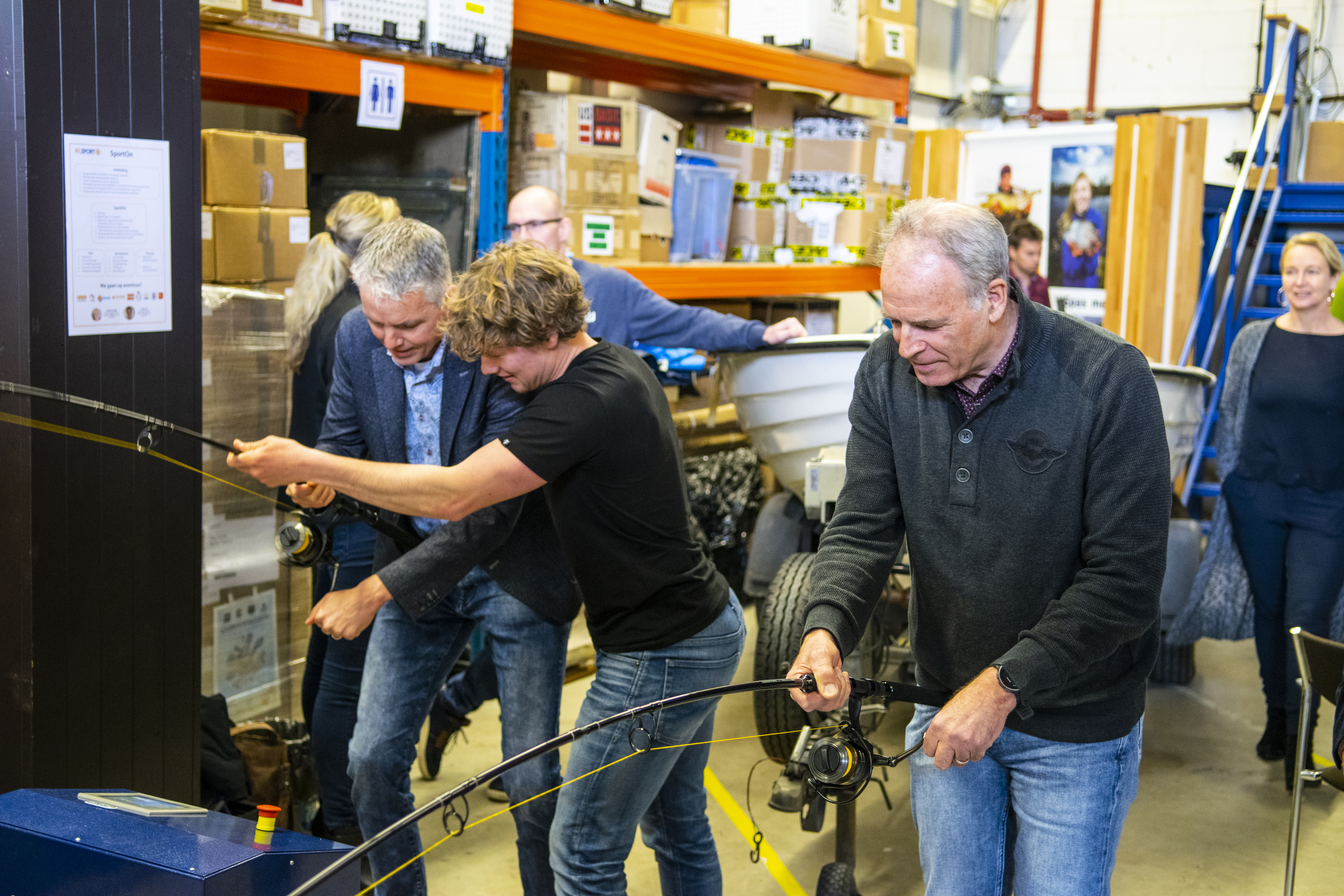 Om eigenhandig de spanning van vissen te ervaren, konden aanwezigen ter afsluiting van de dag met fictieve vissen het gevecht aangaan. Het gestoei met de drilsimulatoren leverde vele lachende gezichten op. Menigeen had het zweet op zijn voorhoofd staan en wist het zeker: vissen is sport.