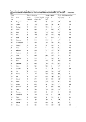 gebruikt. Voor elke soort in elke rivier is de