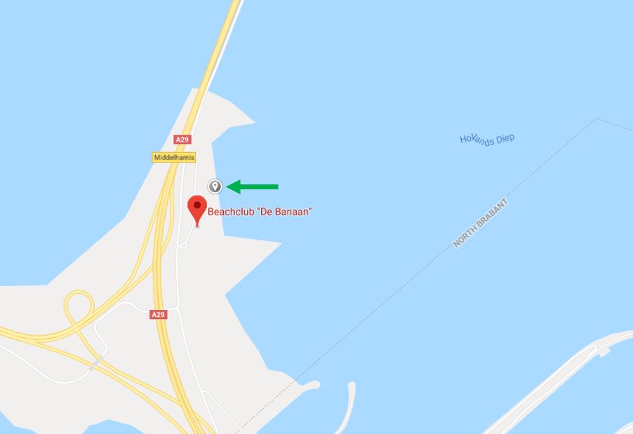 Met zijn ruime opzet en centrale ligging (pal aan de A29, bij de groene pijl hierboven) is De Banaan voortaan een van de meest logische plekken voor bootvissers om het Haringvliet te bereiken. Zowel vanuit het noorden als het zuiden is de helling via de snelweg eenvoudig te bereiken. Onderaan de helling is het water verdiept zodat boten altijd voldoende kunnen kantelen.