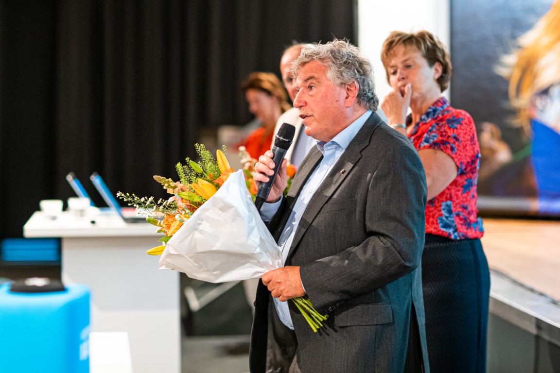 Peter Dohmen reageert nadat hij zijn erespeld heeft ontvangen. Mister Beet