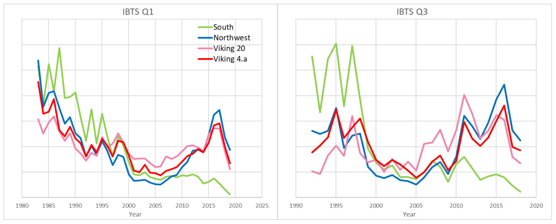 in het 1e (links) en 3e kwartaal. In het groen, onze (zuidelijke) Noordzee.