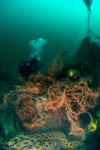 Het expeditieteam werd afgelopen week een aantal dagen gehinderd door hoge golven en zeer dichte mist waardoor het aantal duiken beperkt bleef. Toch is er meer dan 500 kg aan visnetten en ander afval geborgen en zijn honderden krabben en kreeften bevrijd uit de netten. Dergelijk achtergelaten vistuig vormt een bedreiging voor het onderwaterleven. Ook kunnen nylonnetten op termijn een bijdrage aan de ‘plastic soep’ gaan leveren.
