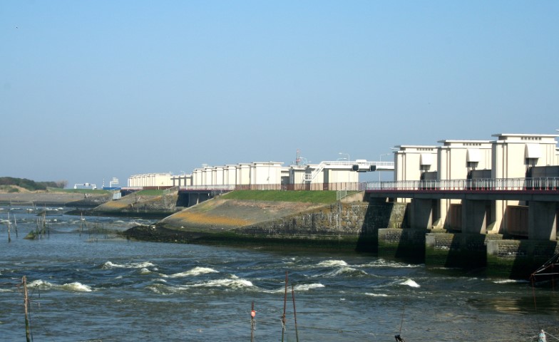 stormvloedkering dicht. Pal naast de spuisluizen komt vis op de zoetwaterlokstroom