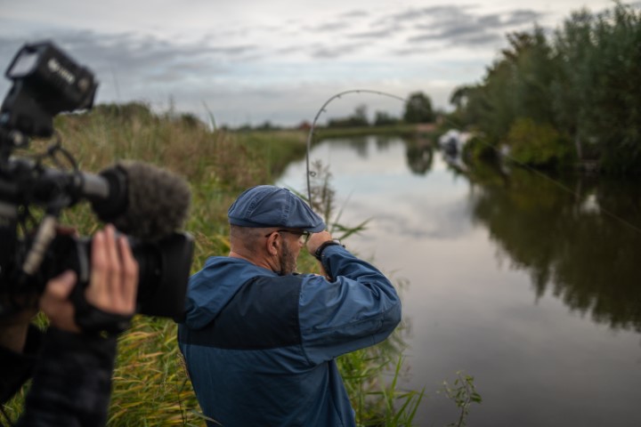 Lang duurt het niet voordat Marco’s speciale snoekbaarspen een korte, felle tik krijgt en rustig wegzeilt: een snoekbaars-aanbeet uit het boekje. De spanning is om te snijden, maar Marco blijft kalm. Geduldig laat hij de lijn strak lopen, zoekt contact met de vis en slaat kordaat aan. Even later glijdt de eerste snoekbaars in het net. Als hij slechts minuten later een vis voor Daniël landt, kan de dag al niet meer stuk. Wat zal de polder nog meer prijsgeven?