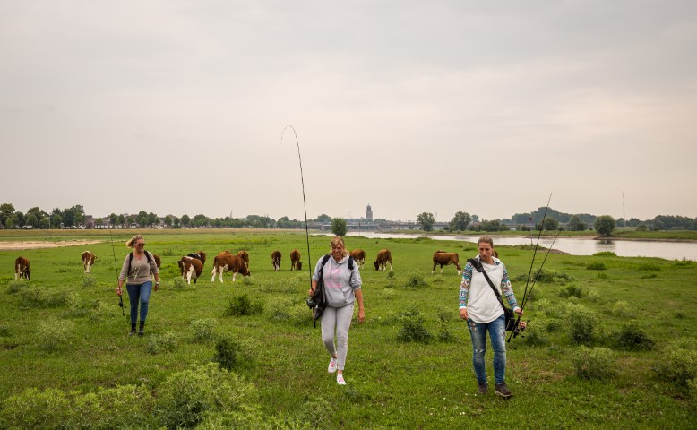 Na het ontbijt bij de camper tuigen Paula en Nathalie hun hengels op en lopen ze richting Deventer, waar het duo werpend met allerhande kunstaas aan de rivier achter de rovers aangaat. Actief hoppend van krib naar krib aan de overzijde van de stad doet het drietal diverse fraaie stekken aan. Roofvisexpert Mikky de Boon neemt het tweetal als instructeur en visgids bij de hand.