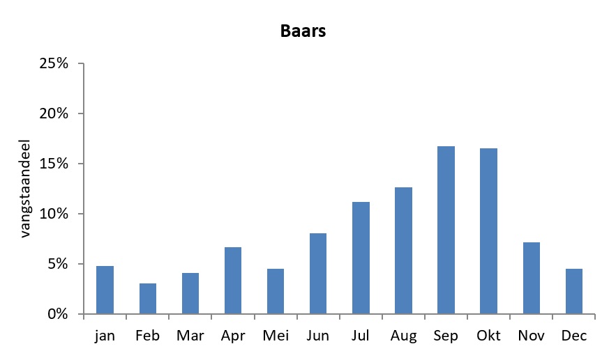 In september gaan de baarzen na een eerste najaarsstorm en of flinke koude regenbui vaak helemaal los. Voor roofblei zijn de vroege en late uurtjes erg goed dus maak gebruik van dit eerste en laatste licht en ben niet bang dat je te snel inhaalt.