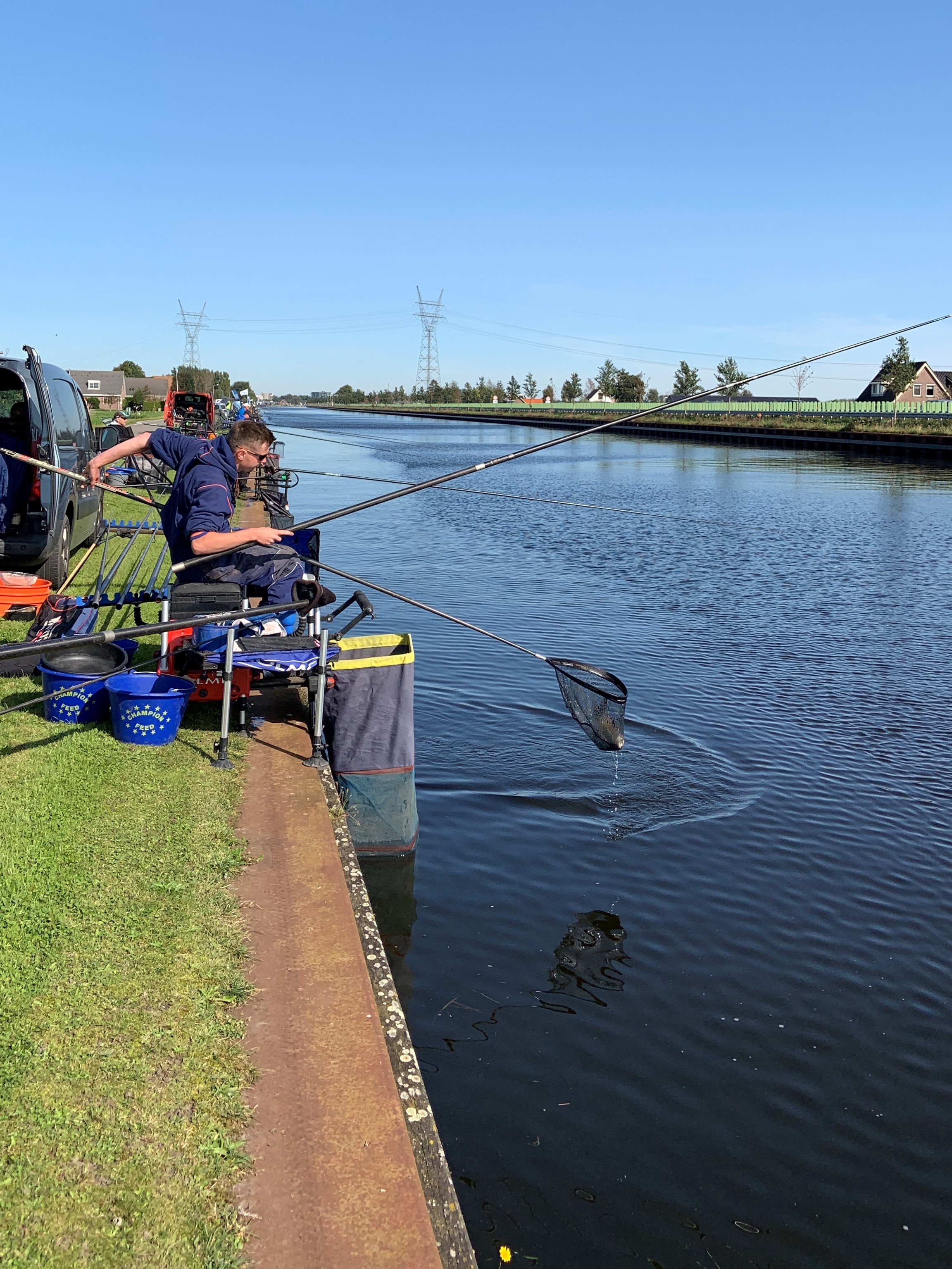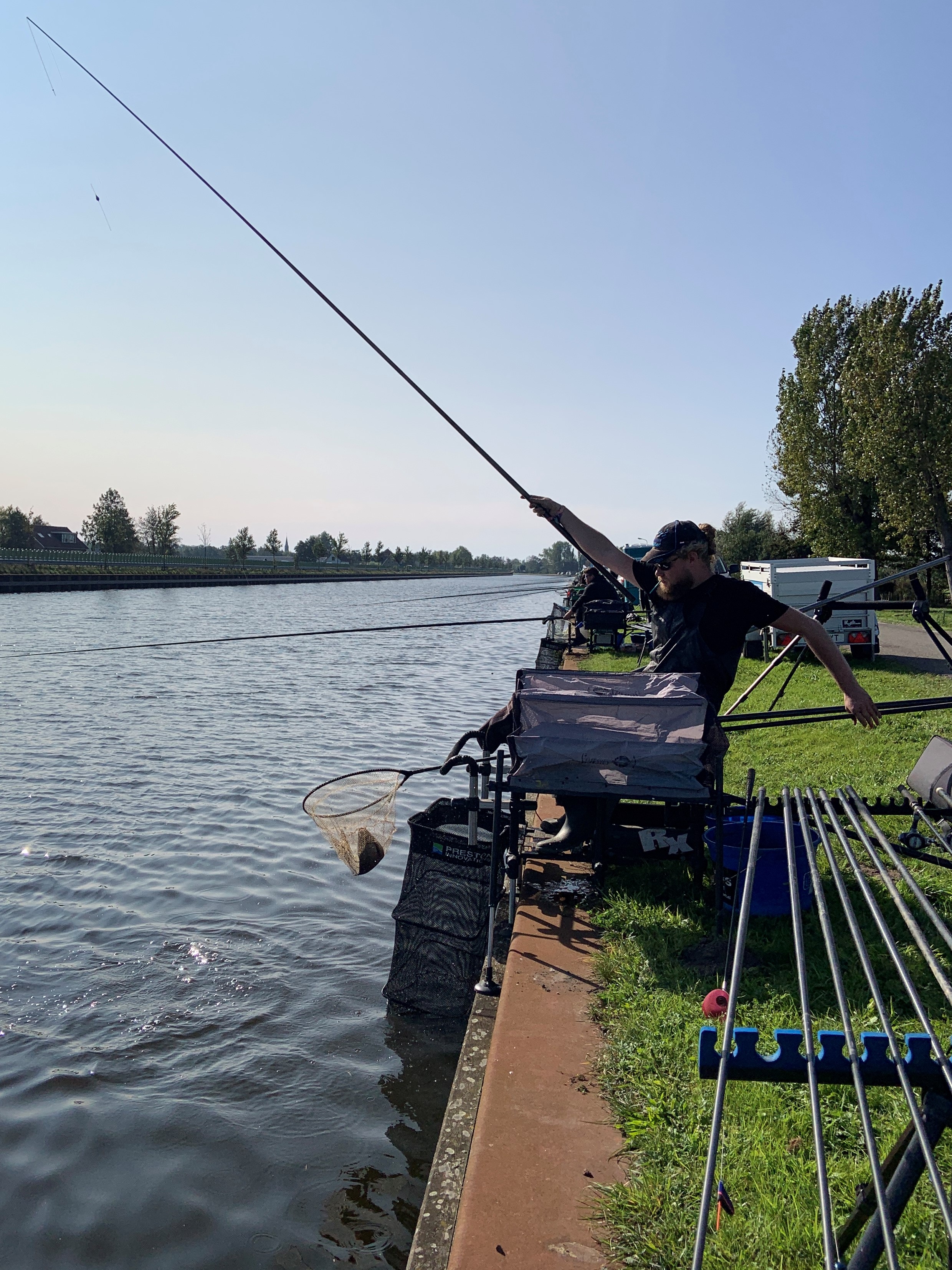 De tweede wedstrijd liet duidelijk betere vangsten zien. “Nadat er op zaterdag voer in het (kraakheldere) water was gegaan, zat er zondag meer en grotere vis op het parcours”, verklaart Ramon Pasmans, teamcaptain van Team Tinca Tinca, de hogere vangstgewichten. Waar zijn ploeg zaterdag teveel miszat door volledig op de brasem te gokken – ‘die vissoort vormt daar vrijwel altijd de hoofdmoot van de vangsten’ – pakte die tactiek op dag twee wel goed uit. “Zelf zat ik zondag op een mindere plek en heb ik vooral ‘defensief’ en voorngericht gevist, maar de rest van het team slaagde er nu wel in om een paar bonusvissen te vangen. Die misten we op zaterdag, waardoor we op achterstand zijn gezet in het tussenklassement.”