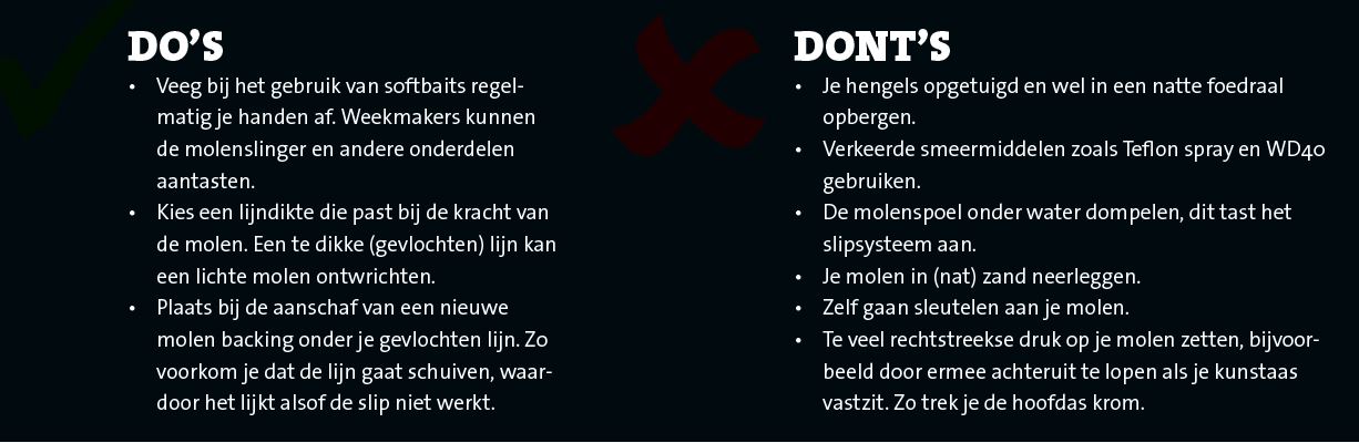 bij Shimano, geeft hieronder tekst en uitleg over molenonderhoud. Zo weet jij voortaan