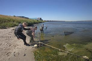 Mede daarom is RAVON, kennisorganisatie voor reptielen, amfibieën en vissen, ook nog voorzichtig optimistisch. Sanne Ploegaert van RAVON doet sinds 2018 onderzoek naar jonge visgemeenschappen in en om het Haringvliet: ”De resultaten zijn hoopvol. Er komt veel vis mee naar binnen blijkt uit doortrekmetingen van Rijkswaterstaat. Het is echter nog onduidelijk hoeveel er van de binnengetrokken vissen ook daadwerkelijk in het Haringvliet blijven of direct na binnenkomst met afgaand water weer mee naar zee bewegen. Haring, spiering en jonge houting hebben een brakwaterzone nodig om te paaien en op te groeien. Die zone mag dynamisch zijn, maar moet dan wel een langere tijd bestaan aan de binnenzijde van de dam.