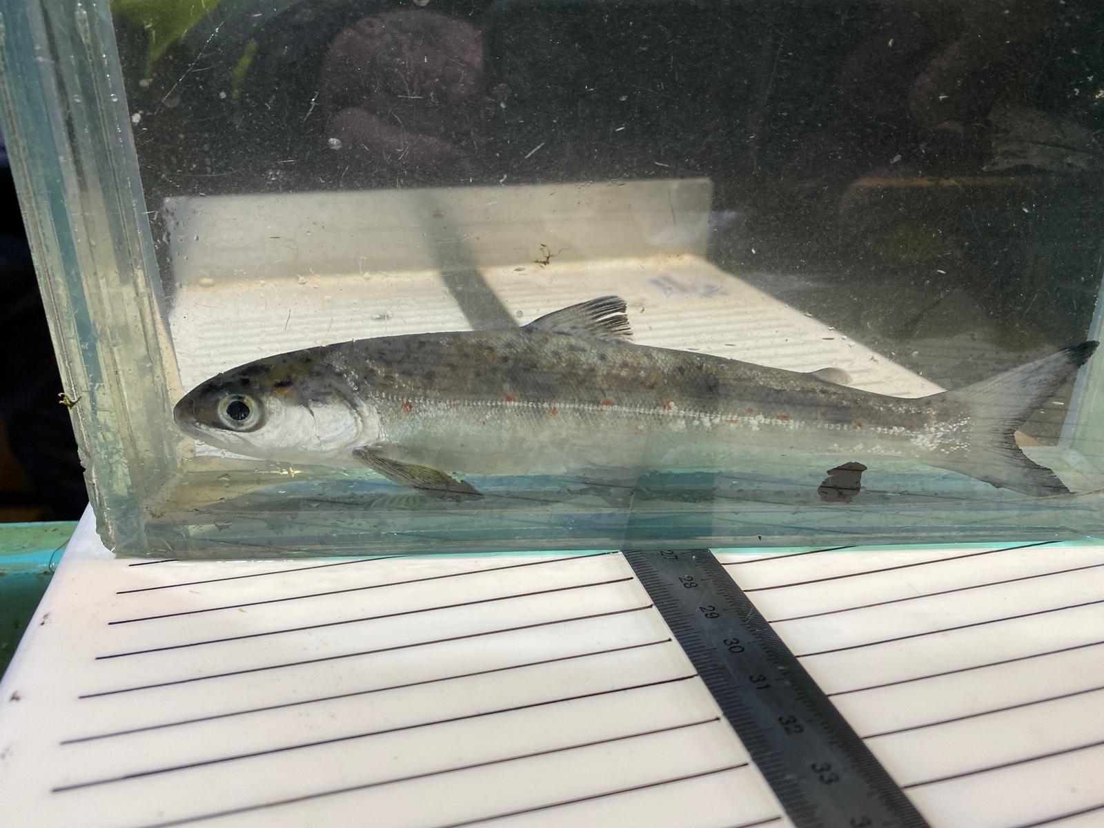 Bij de visstandmonitoring op de Waal werd onder meer een jonge zalm aangetroffen.