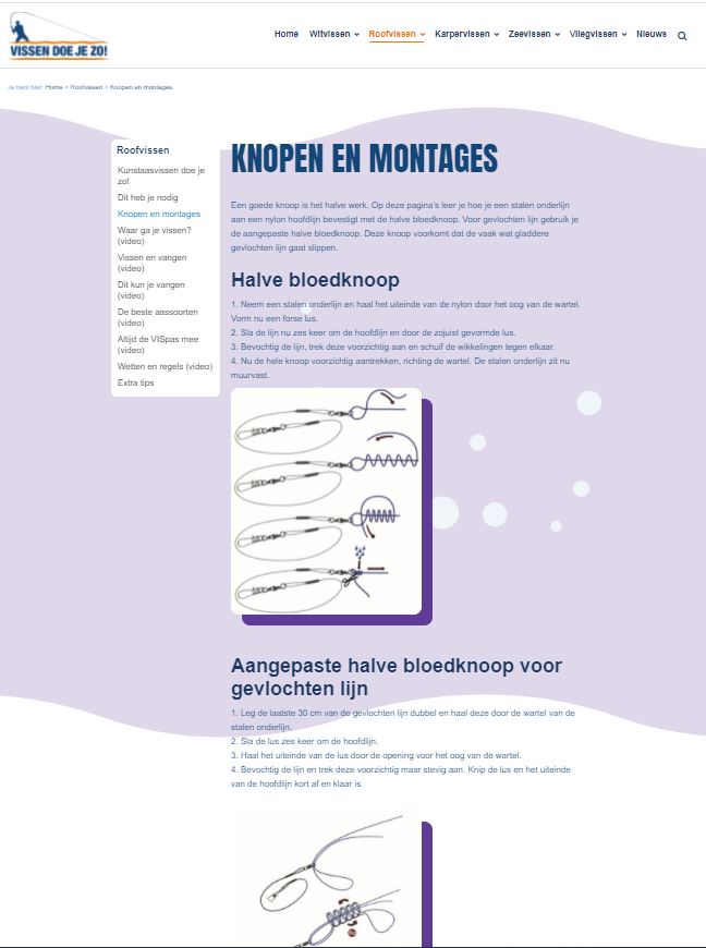Hoewel de website op dit moment al veel technieken, tips, stekken, video’s en handleidingen bevat, volgt binnenkort nog meer ‘lesmateriaal’. Meer instructievideo’s over allerlei onderwerpen worden de komende weken door Sportvisserij Nederland opgenomen en zullen vervolgens op de website verschijnen.