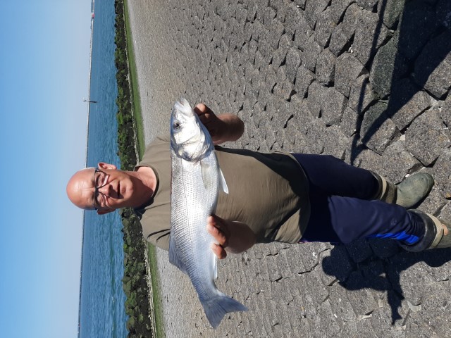 Hoewel de profielfoto van Aswin Doggen zijn zoete roots als roofvisser laten zien, staat hij ook aan zee duidelijk zijn mannetje. Deze fraaie zeebaars kon de shad die Aswin presenteerde niet weerstaan.