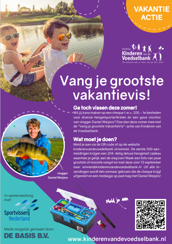 “Wat voor de meeste jongelui de gewoonste zaak van de wereld is, is voor kinderen die in armoede opgroeien haast onmogelijk”, zegt Jan Woldberg, bestuurslid van de stichting. Dat gaat in eerste instantie natuurlijk om zaken als eten en kleding. “Maar wat niet iedereen beseft is dat ook speelgoed, een verjaardagsfeestje en leuke activiteiten zoals sportvissen vaak onbereikbaar zijn voor deze kids. Ieder jaar rond de zomervakantie start de stichting daarom een project om kinderen naar buiten te krijgen en wat om handen te geven in hun vakantie”, vervolgt Woldberg. Dit jaar bedacht voorzitter Maurice van de Ven de actie ‘Vang je grootste vakantievis!’