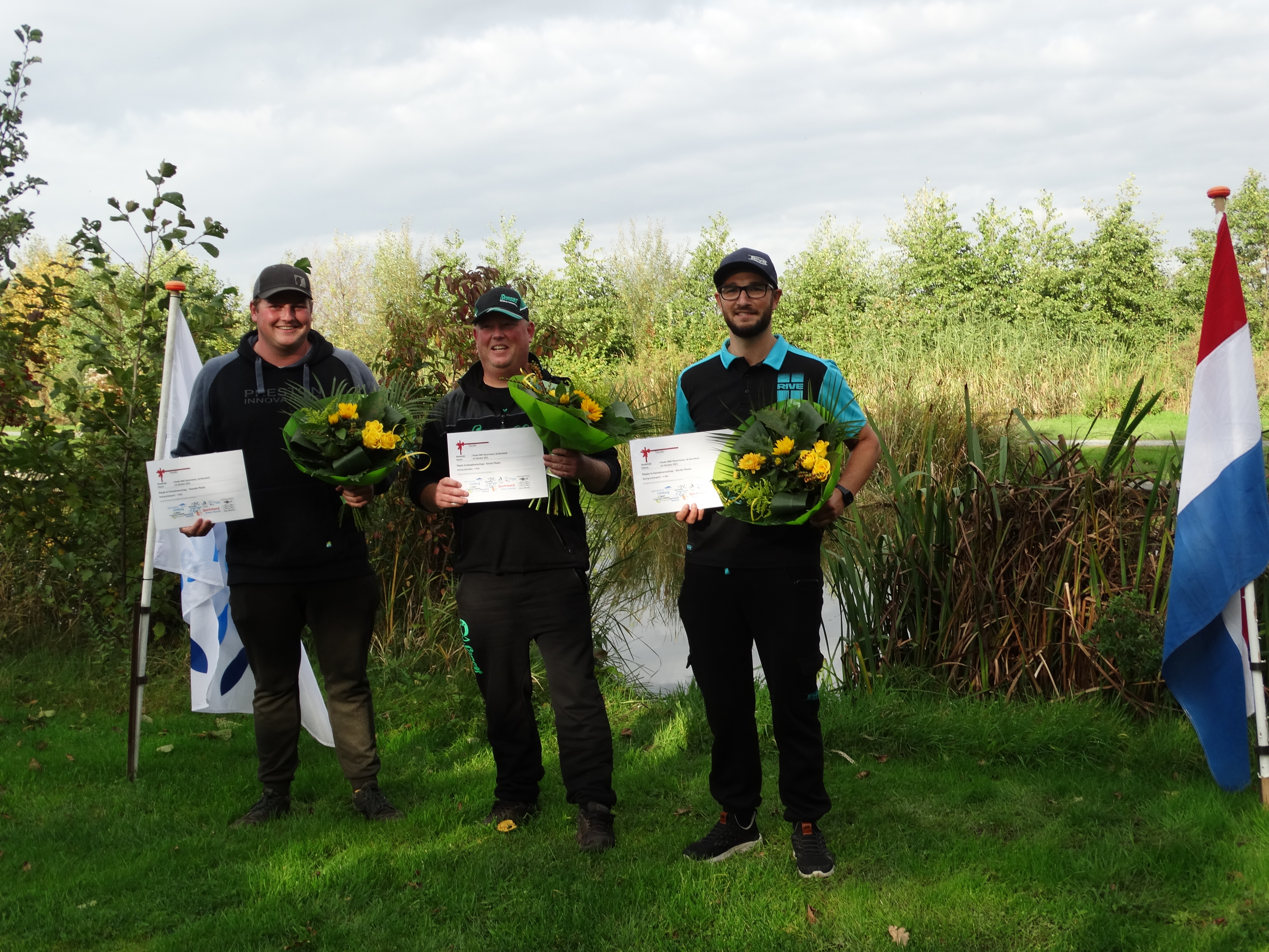 Eric van Otterloo – vooraf één van de grote favorieten – is kampioen geworden met een gewicht van 47,7 kg. Jan van der Lans werd knap tweede met 29,2 kg en als derde eindigde Jeroen van den Broek met 23 kg. De geldprijzen worden verdeeld onder de de eerste vijftien deelnemers in de einduitslag. Aan het verzoek om na afloop terug te komen naar de prijsuitreiking en om te applaudisseren voor de winnaars werd door bijna iedereen gehoor gegeven. Een prachtige dag welke resulteerde in een geweldig kampioenschap.