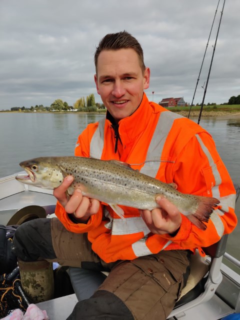 De grote rivieren zijn een soort snelwegen voor vissen. Er zwemt dan ook van alles rond. Zo wist Jos Harbers dit najaar op de IJssel deze Atlantische forel te foppen met de plug.