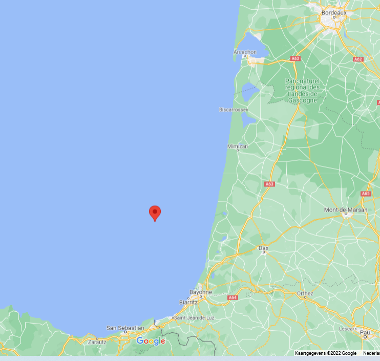 De Spaanse maritiem onderzoeker die op regelmatige basis in Baskische vismijnen kijkt of er ter plaatse gemerkte vissen worden aangeland, kon de ruwe haai met tagnummer 7499 begin dit jaar vrijwel niet over het hoofd zien. Deze bijna 1,70 meter lange vis werd op 28 januari gevangen door de Spaanse trawler Mar Mares – om precies te zijn in de Golf van Biskaje op een diepte van 100 meter, 17 zeemijl uit de kust van het Franse departement Landes. De tag in de rugvin was in goede conditie, zodat het nummer en de URL www.sharkray.eu goed leesbaar waren. Nadat de onderzoeker de tag had veiliggesteld, werd de haai direct verkocht.