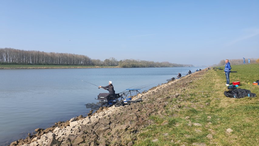 Aan een heerlijk zonnig - en in de ochtend nog tamelijk fris - Amsterdam-Rijnkanaal bij Tiel probeerden de negen teams van elk vier deelnemers elke dag tussen 10.30 tot 15.30 uur een zo goed mogelijk resultaat neer te zetten. Alle drie de dagen werd er redelijk goed vis gevangen, met zaterdag als uitschieter.