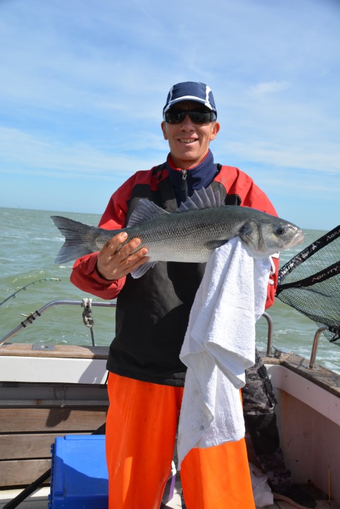 Mark van Wanrooij met een knappe zeebaars, gevangen tijden het trainen.